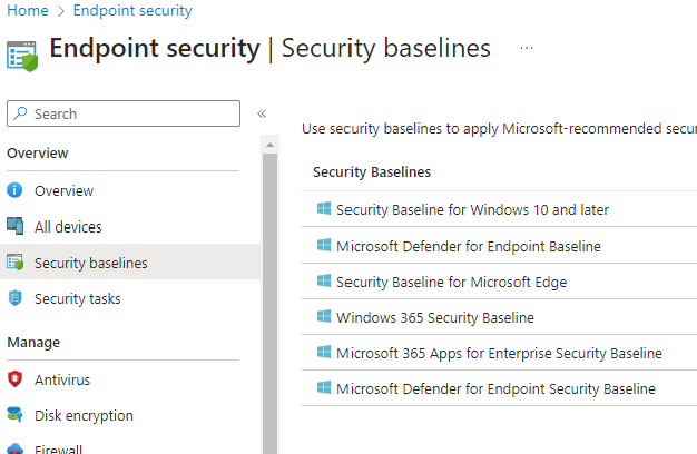 - Enable security baselines for device configuration.