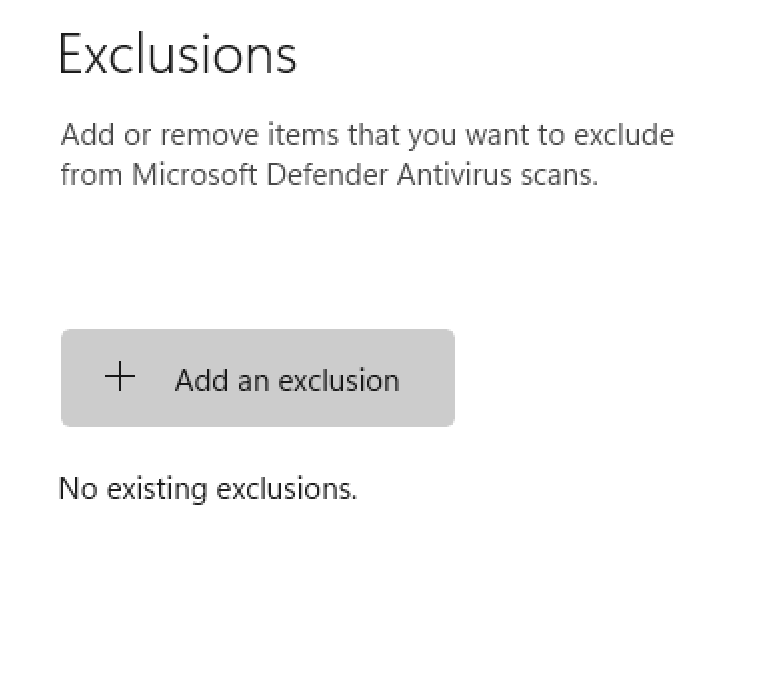 To be able to launch our app again and restore the settings that blocked it from running (Attack surface reduction - prevent apps that do not meet prevalence or age from running) - go into Settings, Privacy and Security, Windows Security, Virus and Threat Protection - > Virus and Threat protection Settings - > scroll to the very bottom and find Exclusions: